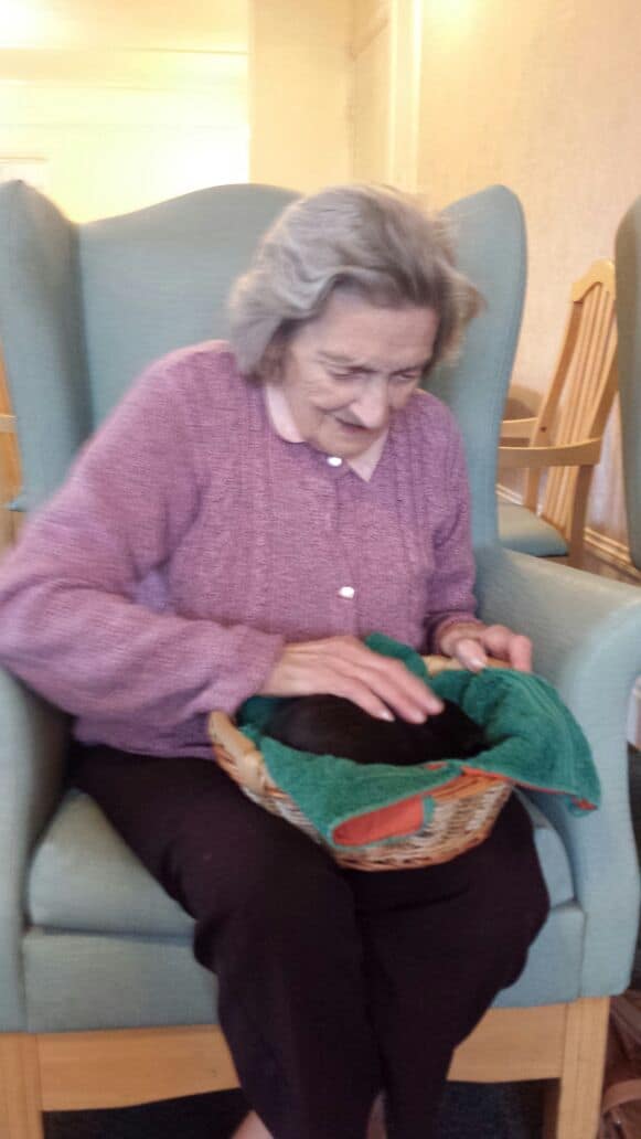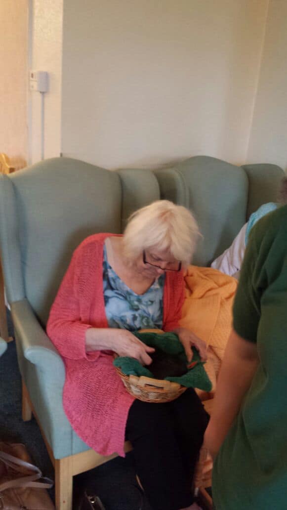 A couple of days ago we had a visit from Pet Pals.  On this visit they brought some guinea pigs. When the residents saw the guinea pigs all their faces lit up with smiles.
