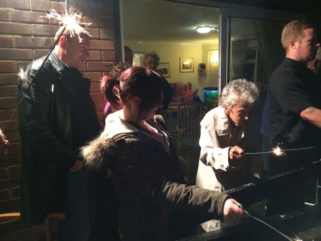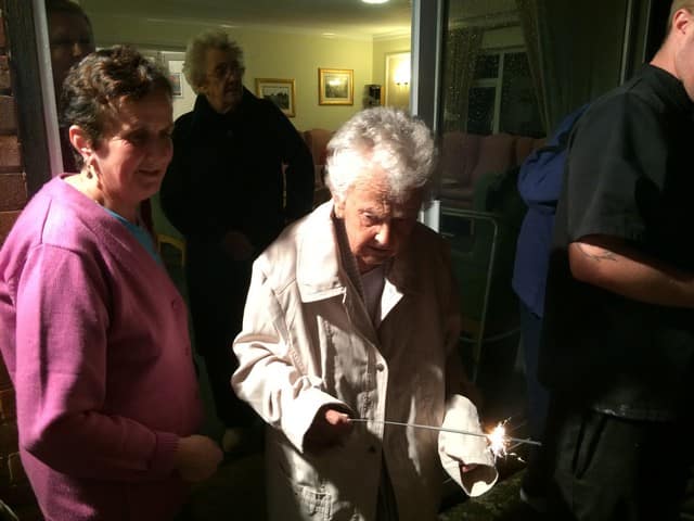 Connie had a great time waving the sparklers around on the night, and Phyllis’s family commented on how lovely it was for a care home to put on a fire works show for the residents.