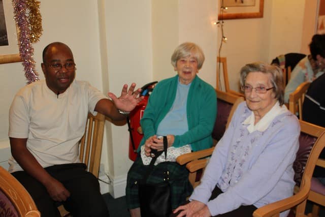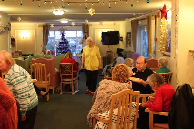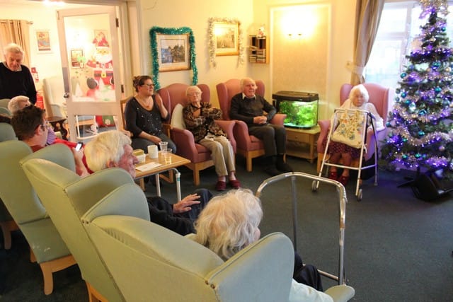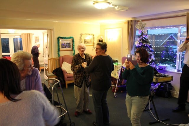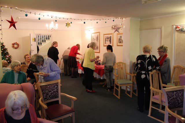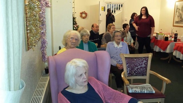 We have been so busy at the Home with different events and activities that we are just posting our Christmas party photos now. We had a lovely party with many family members attending. We were able to raise over £80.00 for St. Micheal’s Hospice. Everyone was treated to a fabulous buffet spread that was all made at the home.  Some of the items on offer were sausage rolls with onion chutney, turkey and cranberry on sour dough, and mince pies all made by our Chef Morgan.