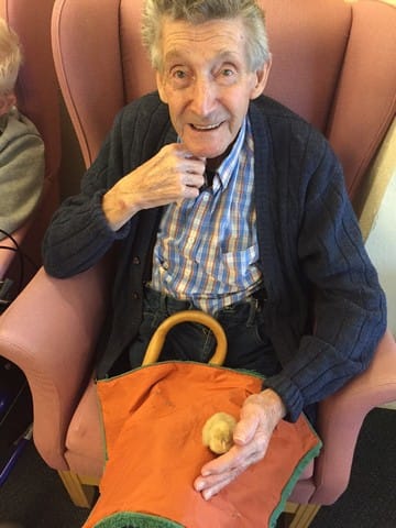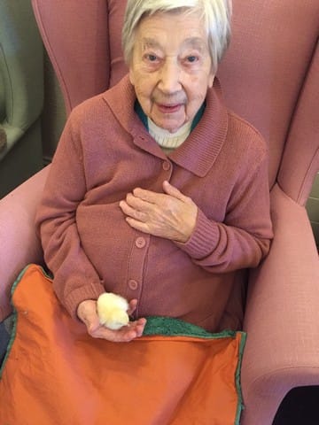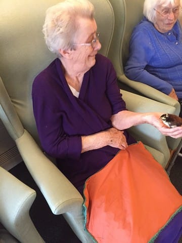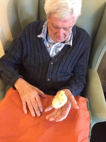 We had our usual visit from Pet Pals, who brought in some little baby chicks. As you can see from the photos below the residents really enjoyed seeing and holding them.