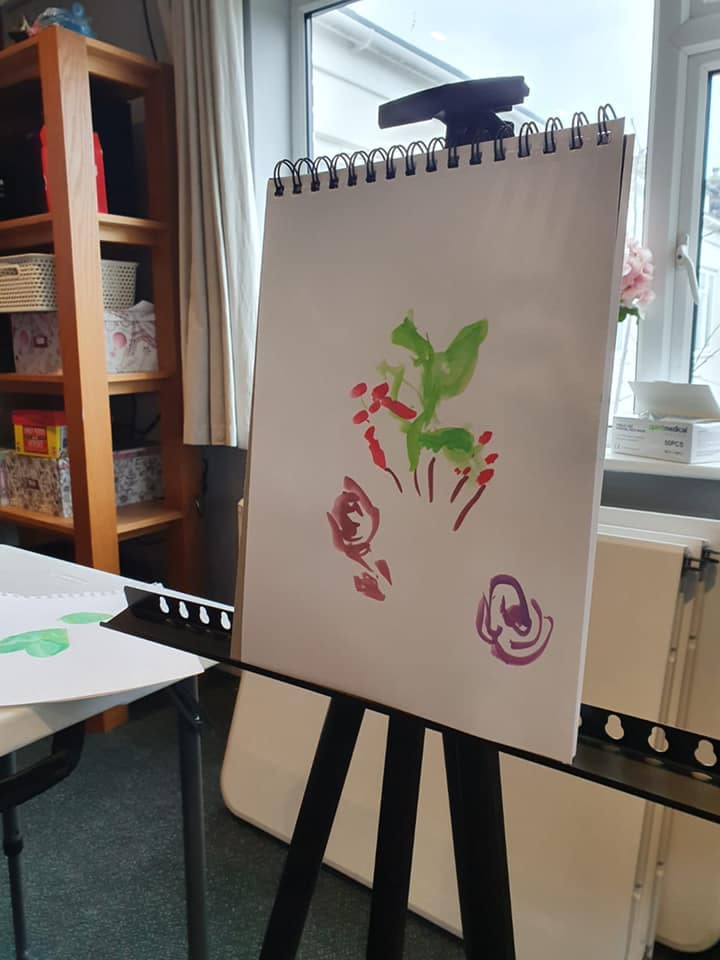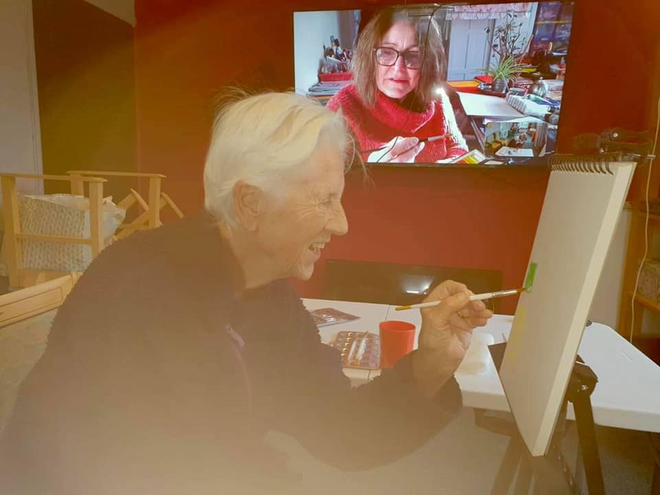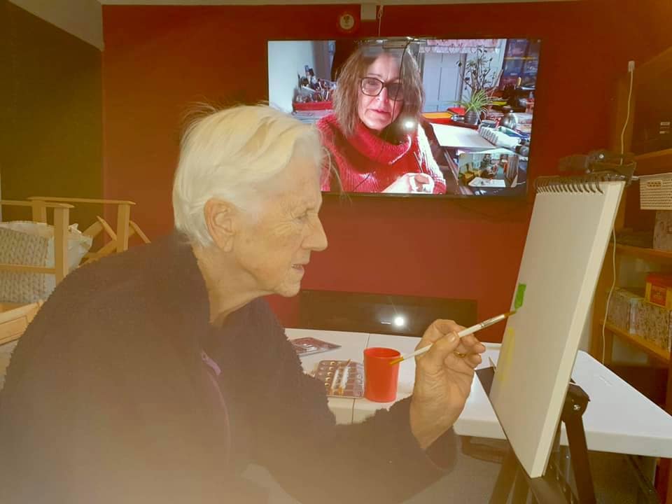 We are pleased to share these photos of Shirley enjoying an Art lesson as a part of our new activities programme.