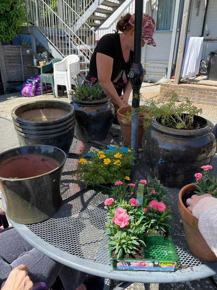 We have recently been having sessions in our garden with Charlie Bloom that have been arranged by Henpower. Charlie is an RHS multi medal winning garden and interior designer. Take a look at the lovely creations she has been making with some of our residents.
