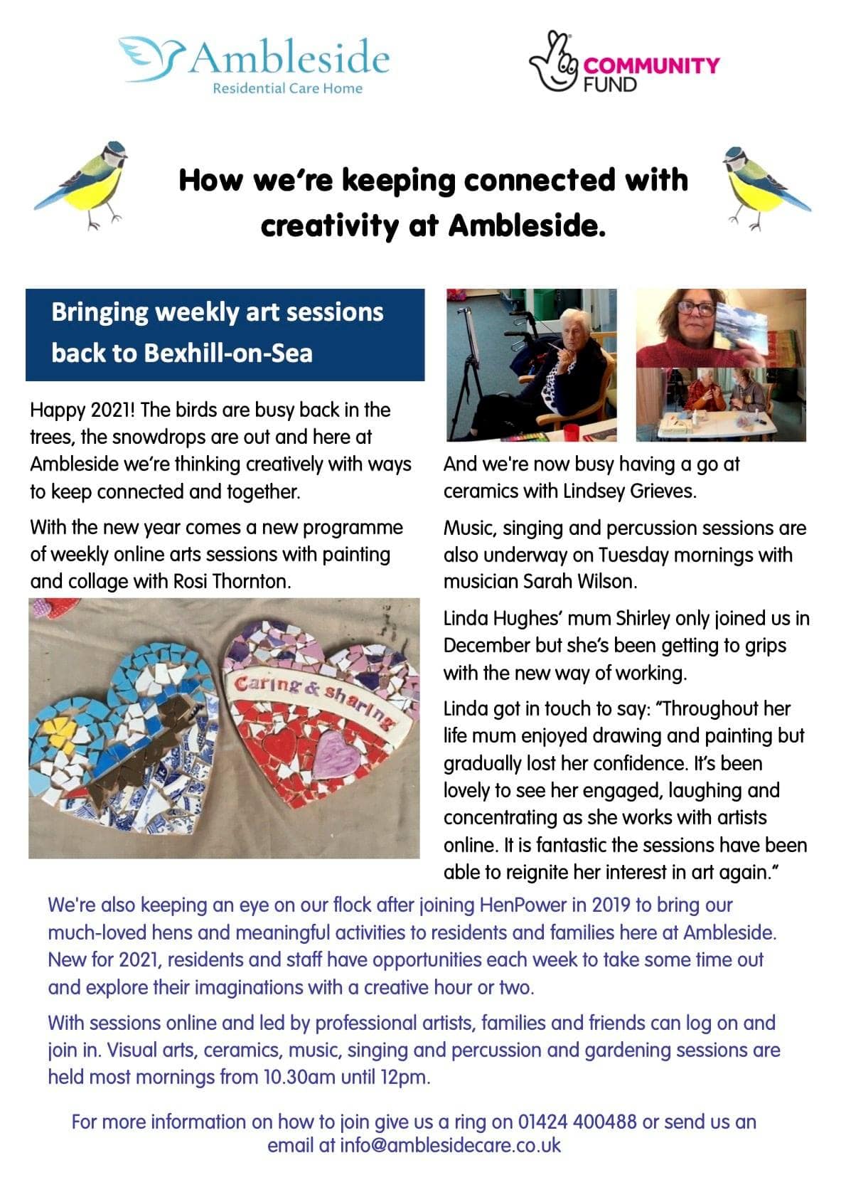 We had a great first session of crafts with Amy today. It was organised by Equal Arts and Henpower. A big thanks to Claire who has been helping out on activities. She did a fantastic job. The residents who took part, really enjoyed the activity. We will be running this every Monday until Christmas.